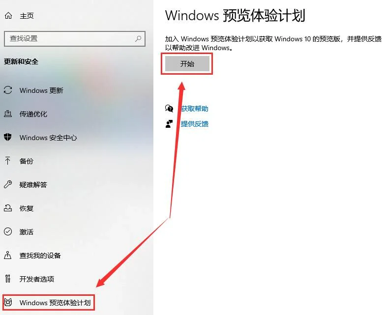 3、操作方式:“菜单”→“设置”→“更新与安全”→“Windows用户预览体验计划”→“开始”即可。