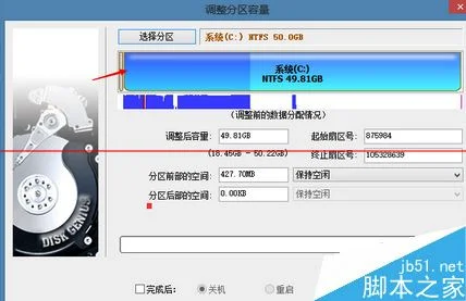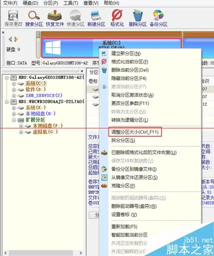 2、我们新建一个格式为Fat16 或者FAT32的主分区 如何新建了 首先先释放出一块未使用的空间 我就直接从磁盘调整了 右键C盘调整大小