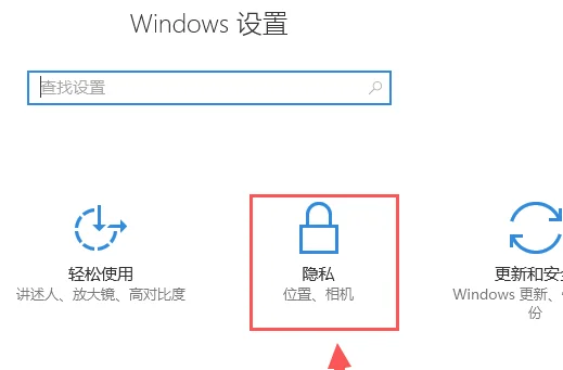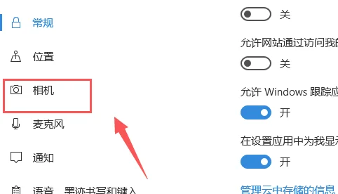 4、在隐私设置面板单击左侧的相机选项卡,如下图所示