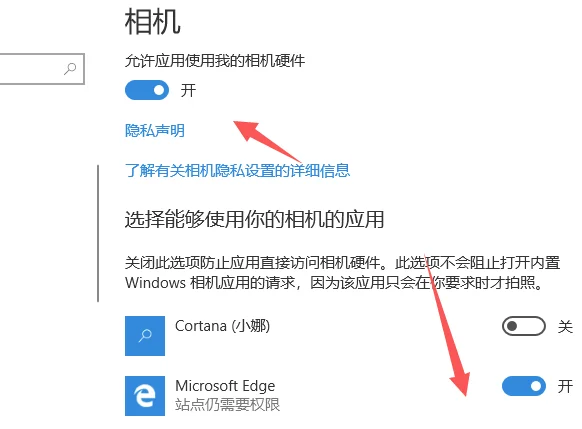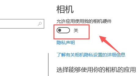6、打开开关后,我们就可以对应用列表中的应用有针对性的开关摄像头了,如下图所示