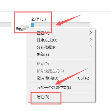 第二步:右键单击你要共享的磁盘,右击、选择属性,如下图所示。