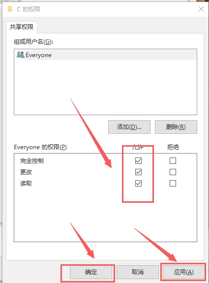 第五步:进入权限列表,勾选权限,点击应用、确定,