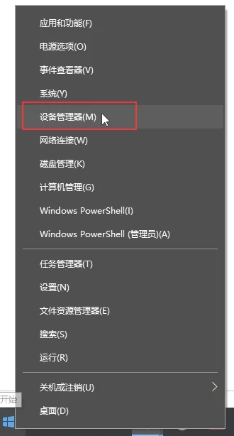1、鼠标右击win开始菜单图标,出现的列表选择“设备管理器”。