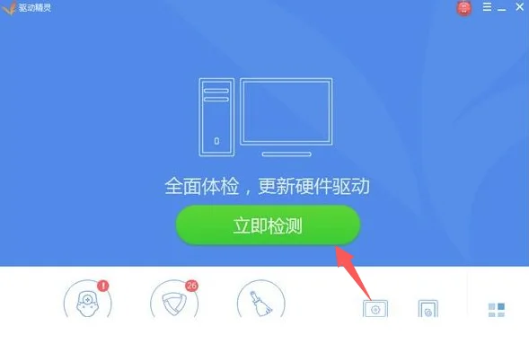 1、百度搜索下载“驱动精灵”,安装完成后双击打开,然后点击“一键体检”,下图: