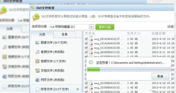 2.下载安装并打开360文件恢复工具,在软件界面上选中手机盘符,并点击开始扫描按钮。扫描结束后,到处所以的扫描结果到微信聊天记录目录中。