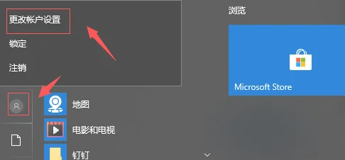1、在开始菜单上方点击用户头像,选择更改账户设置。