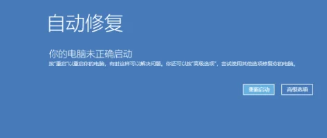 1、可以开机到Windows徽标界面,强制重启3次,然后会触发进入Windows启动修复界面