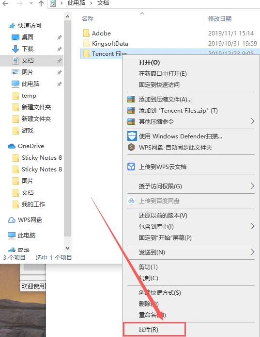 1、打开一个文件夹,然后在左侧可以看到文档,右键点击,选择属性;