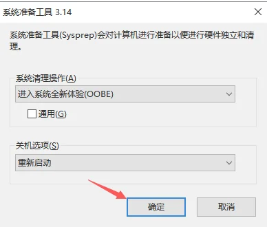 3、接着弹出系统准备工具,对计算机进行准备清理,然后点击确定。接着重启电脑后发现进入全新的系统界面。