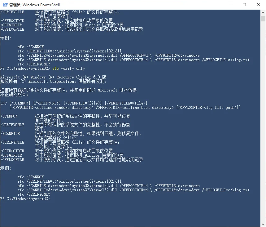 1、右击开始菜单选择 Windows PowerShell(管理员),进入后输入“SFC”,敲击回车键即可。
