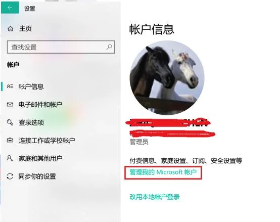 然后:点击设置——账户——管理我的 Microsoft 账户——进入知微软账户页面——点击你的账户——更改密码。
