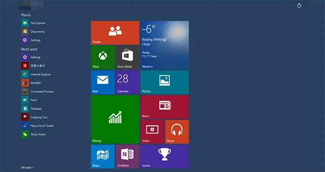当鼠标悬停在【开始】菜单上时,【开始】菜单将会展开。