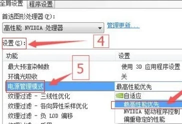4、接着在设置列表中找到【电源管理模式】,使用鼠标左击窗口右侧的【自适应】项目,在弹出的菜单中使用鼠标左击【最高性能优先】项目,设置完成后点击应用 保存设置即可。