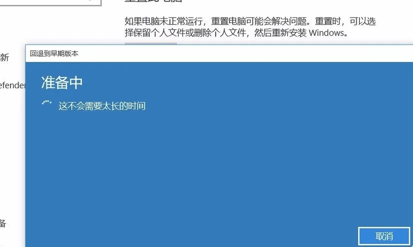 3.选择一个回退的理由,在之后弹出的窗口重复选择【下一步】,之后系统就会重启