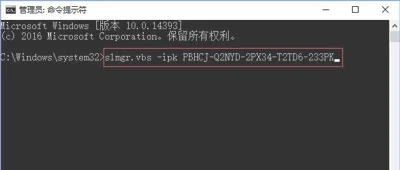 2、然后在命令提示符中输入:slmgr.vbs -ipk PBHCJ-Q2NYD-2PX34-T2TD6-233PK 按下回车键进行激活!