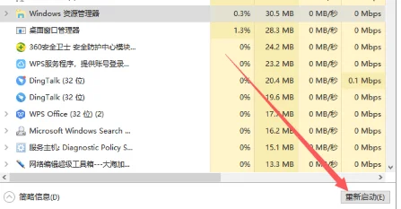 3、找到并选中Windows资源管理器,点击重新启动。