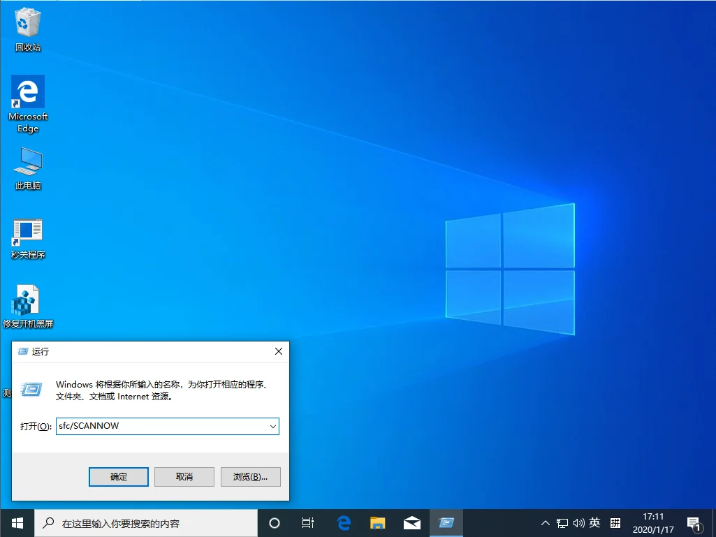 重新启动设备后,打开正在运行的设备窗口并输入命令sfc / SCANNOW。