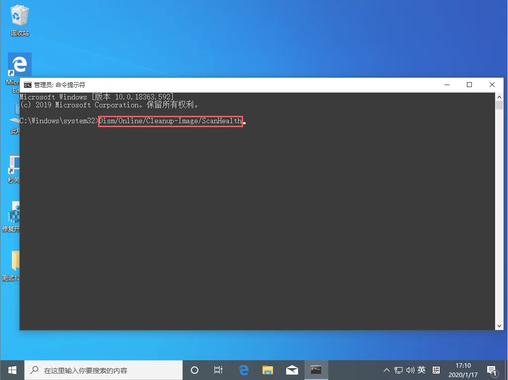 输入命令Dism / Online / Cleanup Image / ScanHealth,Dism / Online / Cleanup Image / CheckHealth和DISM / Online / Cleanup Image / RestoreHealth依次;