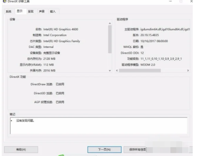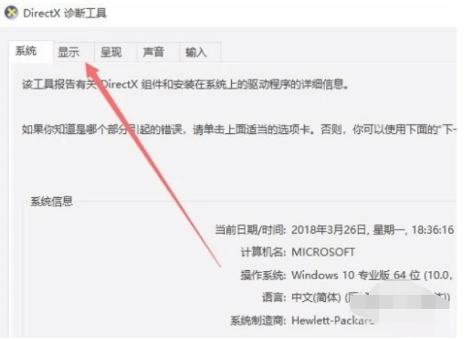 3、我们会进入到Directx诊断工具页面中,我们点击显示选项。