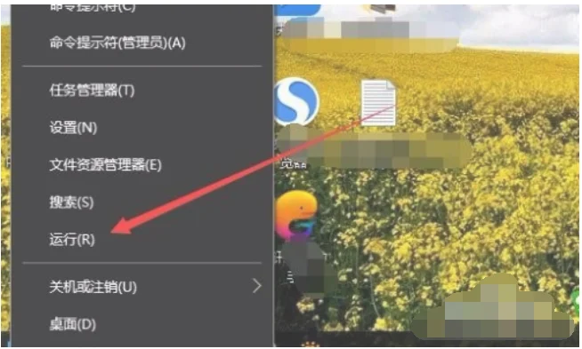 1、首先我们在桌面上,鼠标右键点击开始按钮,在弹出的菜单页面中,选择运行项。