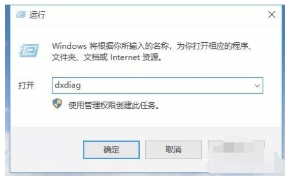2、接着在打开的运行页面中,输入命令dxdiag并点击确认按钮。