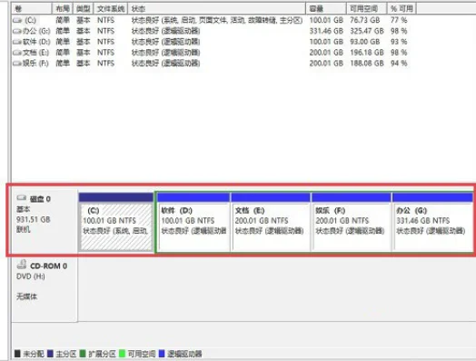 简单来说,我们大多数电脑,都是分为了一个C盘主分区,然后其他的D盘、E盘和F盘等都属于逻辑分区,将D盘、E盘、F盘等出了主分区之外的磁盘组合,则就属于一个扩展分区。