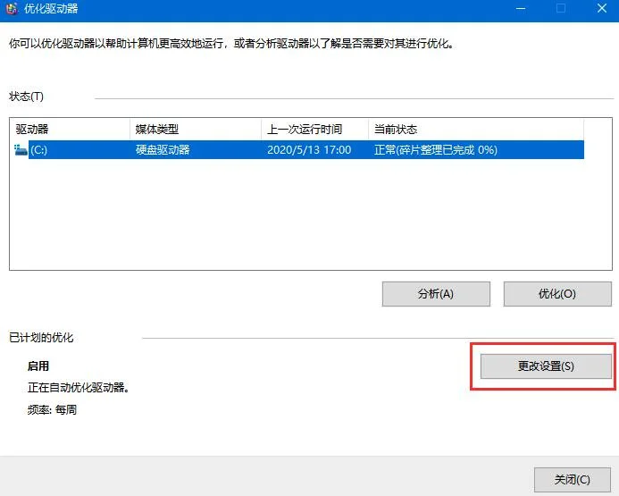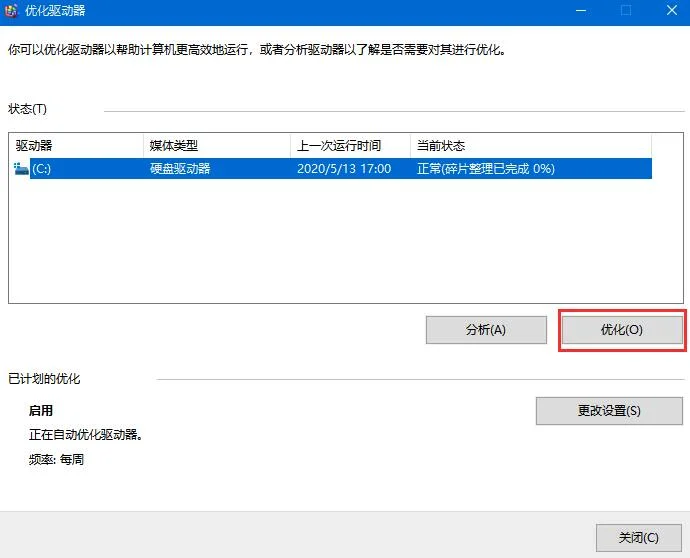 5、优化完成后,就会显示出最后一次优化的时间,以前当前硬盘的状态是否正常;