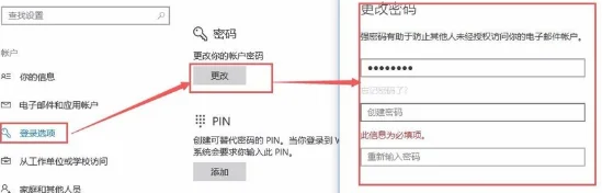 3、然后在左侧点击登录选项,右侧选择更改你的账户密码,输入原密码后,点击下一步继续操作。