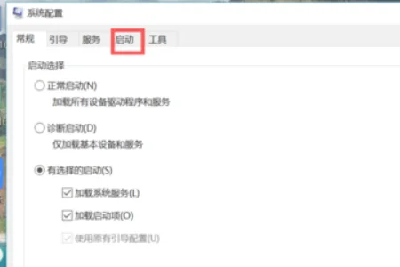 3、点击系统配置对话框上方的启动选项。