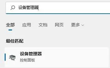 2、大家可以进入开始菜单,然后在其中搜索并打开“设备管理器”。