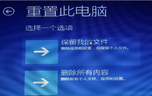 2、 点击进入重置此电脑页面后,如图所示,你根据实际情况来选择“是否保留已安装的软件,应用和资料”,或者删除所有内容。