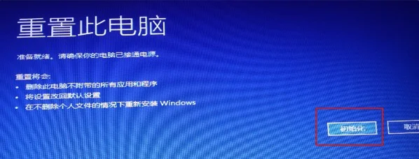 3、 之后,你就会进入确认“重置此电脑”,页面,点击“初始化”。