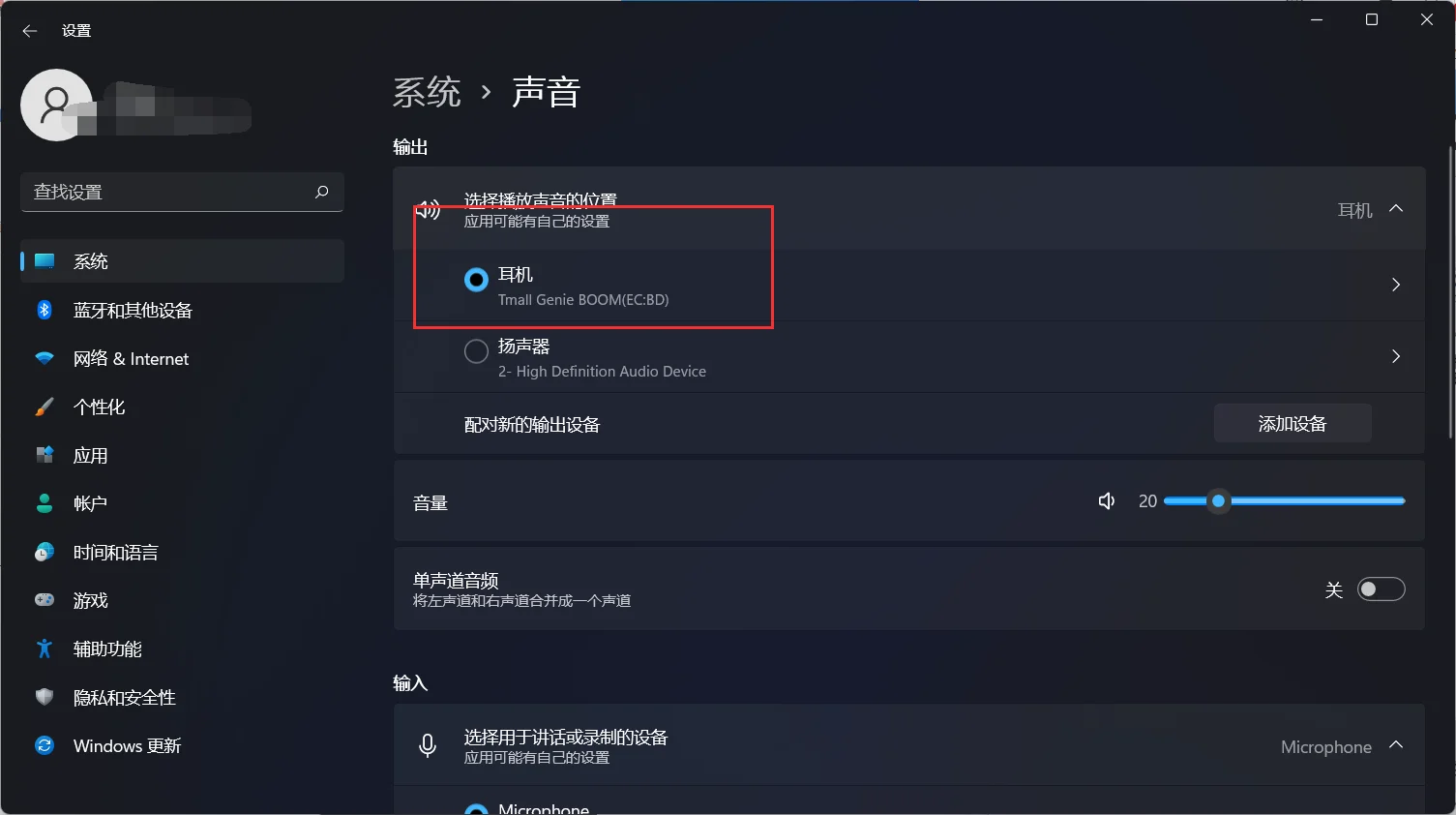 3、进入后,选择我们的声音输出设备即可。