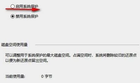 4、在弹出的窗口中选择启用系统保护再点击确定。