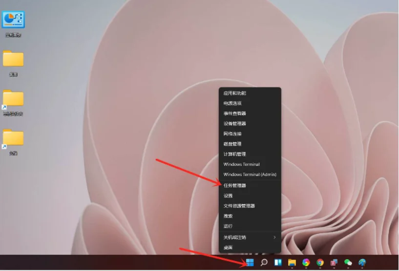 1、鼠标右键点击任务栏上的【开始】按钮,在弹出的菜单中点击【任务管理器】,打开任务管理器,如下图所示;