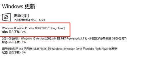8,最后,回到Windows更新,进行检查更新,就会发现Windows 11 的预览版本已经出现在更新中了。等待下载更新完成,按照提示重新启动电脑就可以了。