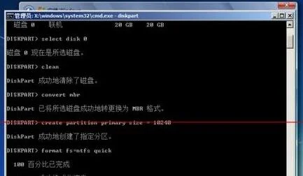 4、然后输入“select disk 0”选中用户的第0个磁盘。
