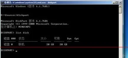 3、接着输入“list disk”回车确定,可以查看到磁盘信息。