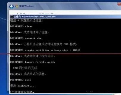 7、输入“create partition primary size = xxx”设定磁盘空间。(这里xxx是磁盘大小用户可以自定义,注意单位为MB)