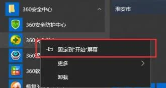 2、然后右击左侧需要添加标签的程序,选择“固定到“开始”屏幕”。