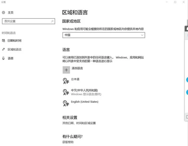 1、首先打开区域和语言设置(搜索),看看是否有“显示语言(替代)”,如果有,恭喜你,你马上就能解决问题了。