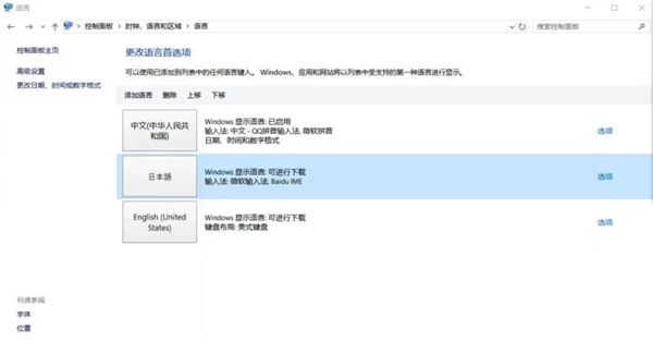 2、接下来很简单,打开控制面板(搜索) 点击添加语言,点击高级设置。