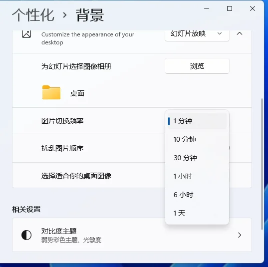 首先大家要知道,Win11系统本身只能设置幻灯片形式的动态切换壁纸。