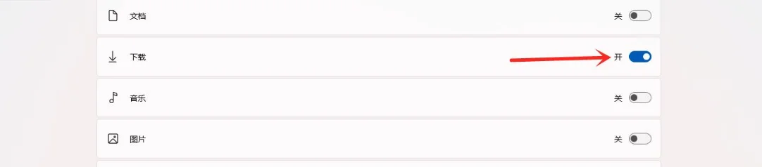 选择要添加的文件夹,打开右侧的开关即可。