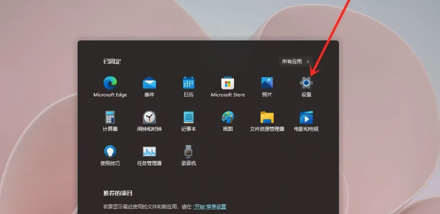 打开开始菜单,点击【设置】,打开win11设置界面。