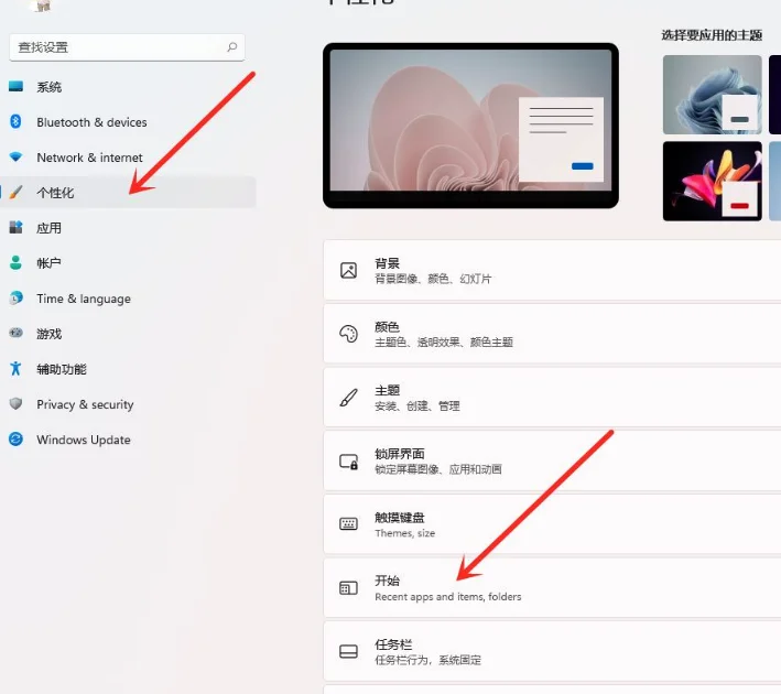 进入个性化界面,点击【开始】选项。