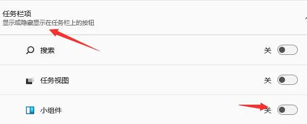 2、然后展开其中的“任务栏项”,在将下方的小组件打开。