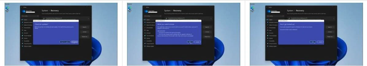 然后您会收到一条消息,提示您如果不知道密码可能会被锁定,但是如果您使用 Windows Hello 或 Pin 登录到 Windows 10,这就是您返回后会发生的情况,您可以点击进入这个Next提示也是。现在,微软将给您一个改变主意的机会,例如“检查更新?”,暗示您的问题可能只需通过更新即可解决,您可以单击否,谢谢。