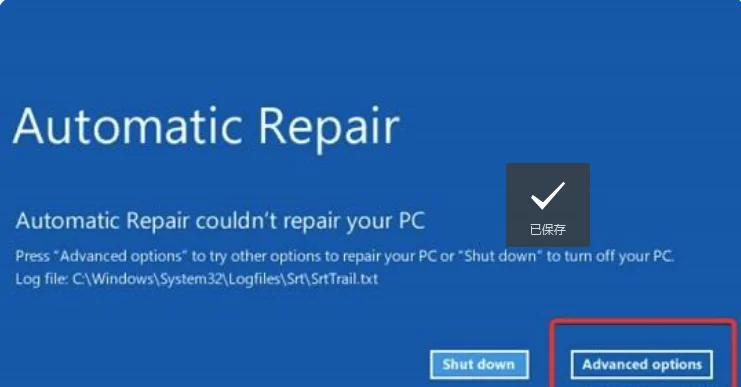 2、重启几次之后会进入系统修复界面,点击“高级选项”。