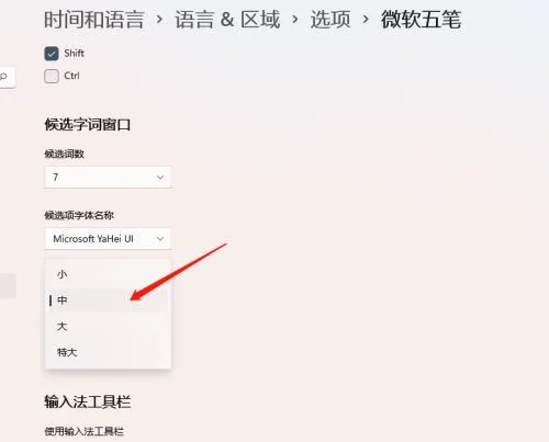很多用户都已经将电脑升级成了Win11系统,但是很多模式还不会操作,最近有收到用户反映不知道怎么设置Win11系统里的输入法候选字体大小,针对这一问题,本篇带来了Win11输入法候选字体设置教程,分享给大家,感兴趣的继续看下去吧。 Win11输入法候选字体设置教程: 一、右键输入法模式 在桌面右下角,右键输入法状态栏的中(或者英)字。 二、进入设置。 三、设置候选项字体大小 在候选项字体大小的下方,选择合适大小字体即可。
